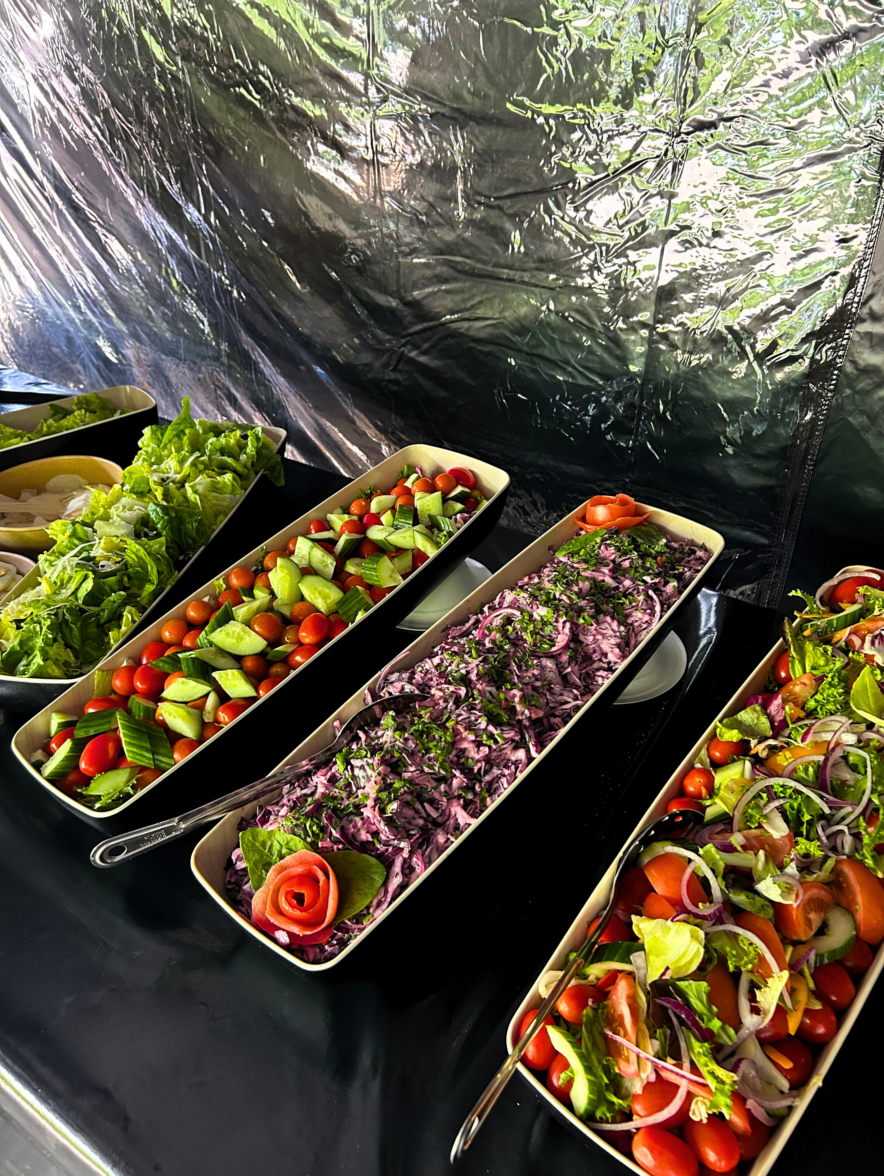 We stay in contact with your production team throughout the day. If lunch gets pushed back an hour, we adjust. Our food is prepared to maintain quality even if timing shifts, and we're flexible enough to adapt to your changing schedule.